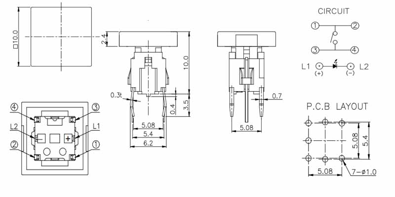 Operating Force:180±50gf or 250±50gl