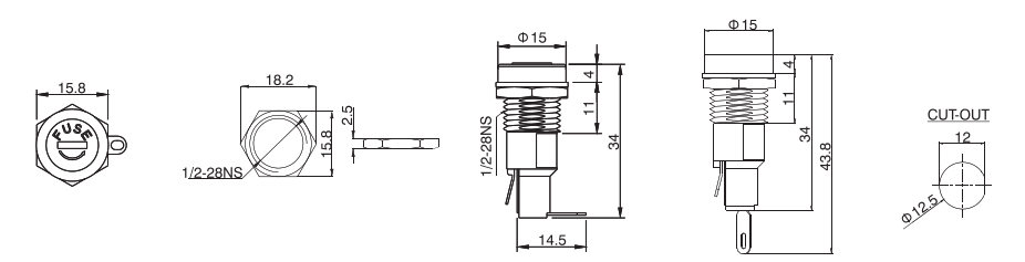保險絲座FH系列,保險管座常見于PCB固定和螺母固定兩種方式,電流10-30A不等,配置的保險管5*20mm和6*30mm,擁有UL CE CQC認證,廣泛用于汽車行業,家電等